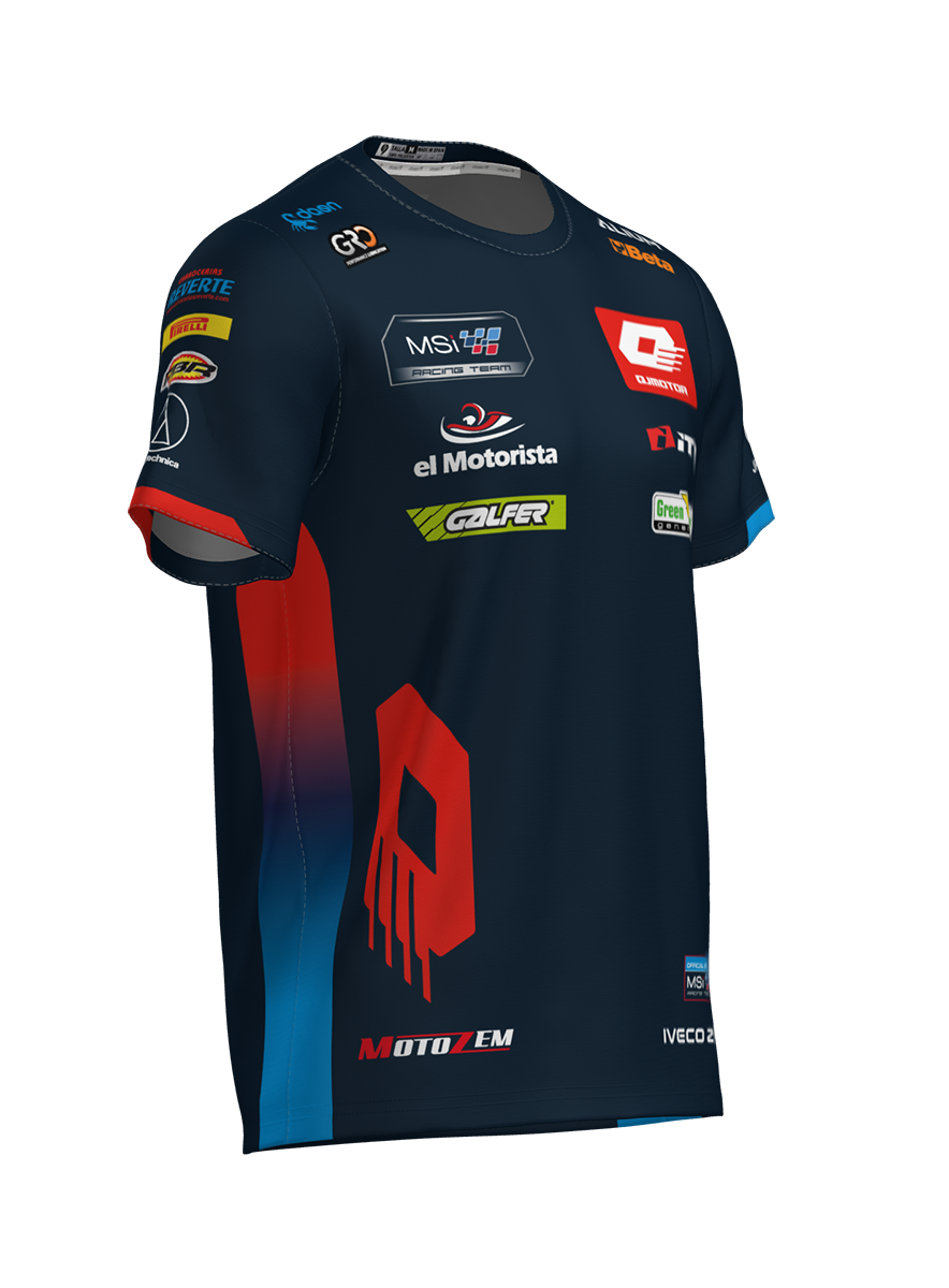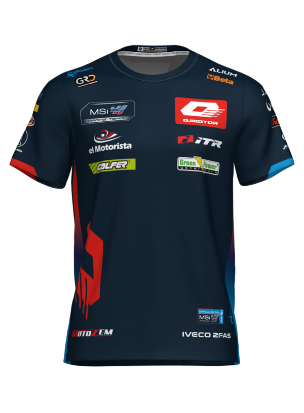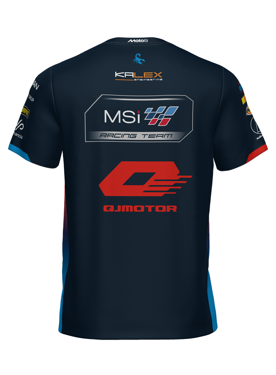 Fabricada en tejido técnico transpirable con textura deportiva, ofrece buena comodidad para el día a día, eventos y circuito. Su diseño fullprint integra la estética oficial del MSI Racing Team Moto2 2026 en toda la camiseta.